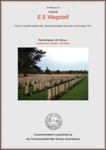 - Elsie, living at Walrose Farm Betley, received official news of his death from wounds on 29th October 1917. He would have been about 27 years old