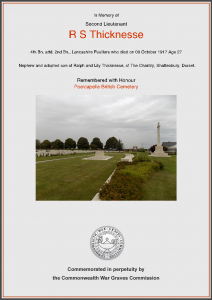 Biography – Second Lieutenant Raymond Samuel Thicknesse
